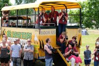 Kita diena buvo tiršta veiklos. Pirmiausia aplankėm kolegų parodas ir pasidžiaugėm jų darbais. Paskui užsiėmėme strategines fotografavimo vietas virvės traukimo purve varžybose: kas užsiropštė į autobusiuką, kas įsitaisė visai šalia veiksmo vietos be baimės, kad geras purvo pliūpsnis gali užklijuoti objektyvą. Laimėjo mūsų favoritai „Kristalo“ komanda; juos buvom išsyk nusižiūrėję kaip elegantiškiausiai pasipuošusius – tarsi eitų į tarnybą biure.