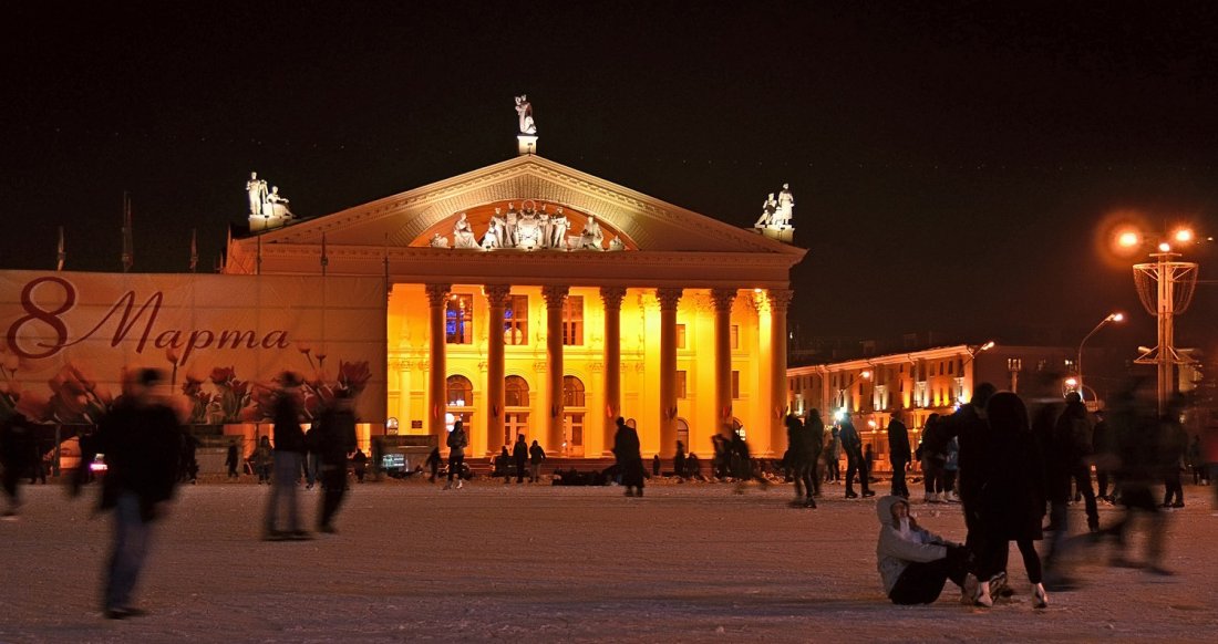 Pirmą giedrą ir ramų vakarą minskietis fotomenininkas Konstantinas mūsų šešetuką (viešbučio grupės branduoliuką) maloniai pavedžiojo po nakties žiburių nutviekstą miestą. Pakeliui aplankėme ir jo asmeninę parodą. (Beje, naktį miestas gerokai įspūdingesnis.) Tik vėlų vakarą atsisveikindamas mūsų palydovas prasitarė, kad rytoj būsiąs jo jubiliejus.